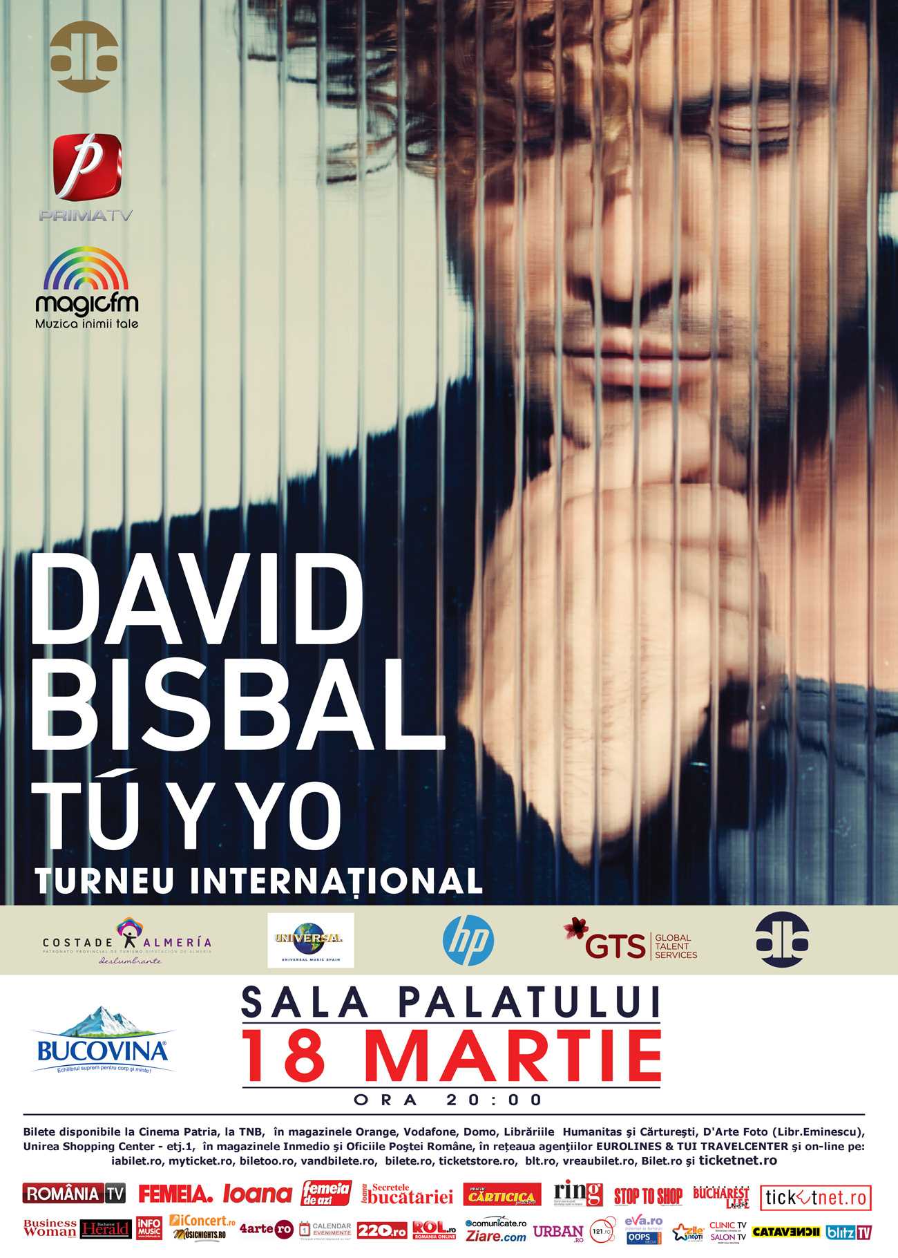 Concertul carismaticului artist spaniol, DAVID BISBAL, anuntat a se desfasura pe 18 martie 2015 la Sala Palatului din capitala, se bucura de interes major in randul cautatorilor de experiente concertistice memorabile. In top-ul preferintelor se afla biletele destinate categoriei VIP, bilete ce le ofera clientilor un avantaj suplimentar. Astfel, admiratorii celui mai iubit artist de muzica latino care vor alege sa isi cumpere bilete in zona din apropierea scenei, vor primi un cadou muzical special. Mai exact, la achizitionarea a doua bilete categoria VIP, clientul va primi, in dar, cel mai nou album al artistului David Bisbal, intitulat ”Tu Y Yo”. Nici celelalte categorii de bilete nu sunt neglijate de fani, vanzarea acestora inregistrand un ritm accentuat, fapt determinat de preturile accesibile dar si pentru aprecierea uriasa a marelui artist in randul romanilor si a grupurilor de admiratori din tarile invecinate, acestia din urma optand intr-un numar mare pentru procurarea biletelor prin intermediul platformei online www.ticketnet.ro , agentia oficiala de ticketing a concertului David Bisbal la Bucuresti. In acelasi timp, biletele sunt disponibile si la casa de bilete a Salii Palatului, in reteaua agentiilor Eurolines si TUI TRAVELCENTER, magazinele Inmedio, la Oficiile Postei Romane, Libraria Eminescu, la Unirea Shopping Center – parter si online prin www.bilete.ro, www.biletoo.ro si www.ticketstore.ro. Concertul lui David Bisbal din aceasta primavara, face parte din turneul international ”Tu Y Yo”, ce promoveaza cea de-a cincea aparitie discografica a artistului. Din playlist-ul concertului de la Bucuresti nu vor lipsi melodiile de succes, ”Buleria”, ”Corazon Latino”, ”Premonicion” sau ”Sin mirar atras”, dar si piese in prima auditie, desprinse din noul albumul. Cu aceasta ocazie, David Bisbal a transmis un mesaj publicului din Romania: