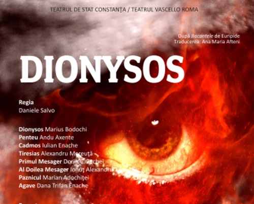Două dintre cele trei spectacole ale acestui weekend la Teatrul de Stat Constanța sunt reprezentații ale piesei de teatru antic „Dionysos”, de regizorul italian Daniele Salvo după tragedia lui Euripide, „Bacantele”. Vineri, 20 octombrie, și duminică, 22 octombrie, de la ora 19.00. În rolul principal spectatorii îl vor putea vedea pe actorul Marius Bodochi, aflat într-un dialog senzual cu Bacantele jucate de Georgiana Mazilescu, Maria Lupu, Laura Iordan Adrian, Lana Moscaliuc, Mirela Pană, Cristina Oprean, Turchian Nasurla, Ana Maria Ștefan, Luiza Martinescu, Georgiana Rusu și Arina Cojocaru. Dionysos vine în Teba, însoţit de alaiul său de bacante (sau menade), ca să se răzbune pe regele Penteu, vărul său – jucat de Andu Axente, care nu-l cinstea ca pe un zeu, ba chiar pretindea că mama sa, Semele, îl concepuse nu cu Zeus, ci cu un muritor. Dionysos se răzbună făcând în aşa fel încât mama lui Penteu, Agave – rol jucat de Dana Trifan-Enache, atrasă în alaiul bacantelor şi cuprinsă de nebunie, să-şi ucidă chiar ea fiul, crezând că este o fiară şi lăudându-se apoi cu fapta sa „de vitejie”. Viziunea regizorală a lui Daniele Salvo presupune întoarcerea la textul şi la intenţia originale – viziune la care concură muzica stranie, concepută de un specialist foniatru, Marco Podda, şi proiecţiile video semnate Aquamicans / Paride Donatelli. Costumele sunt semnate de Daniele Gelsi, iar decorurile, de Michele Ciacciofera. În alte roluri: Cadmos – Iulian Enache, Tiresias – Alexandru Mereuță, primul mesager – Dorin C. Zachei, al doilea mesager – Ionuț Rusu, paznicul – Marian Adochiței.